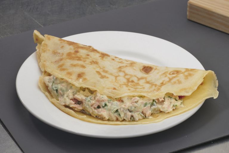 Eine herzhafte Variante für das Basis-Pfannkuchen (Eierkuchen) Rezept.