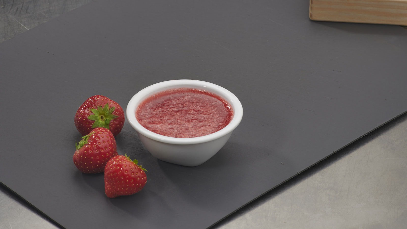 - Die Erdbeermischung im Kochtopf mit Deckel mit einem Pürierstab pürieren und ca. 4 Minuten kochen lassen. Mit der Gelierprobe testen, ob sie fertig ist.