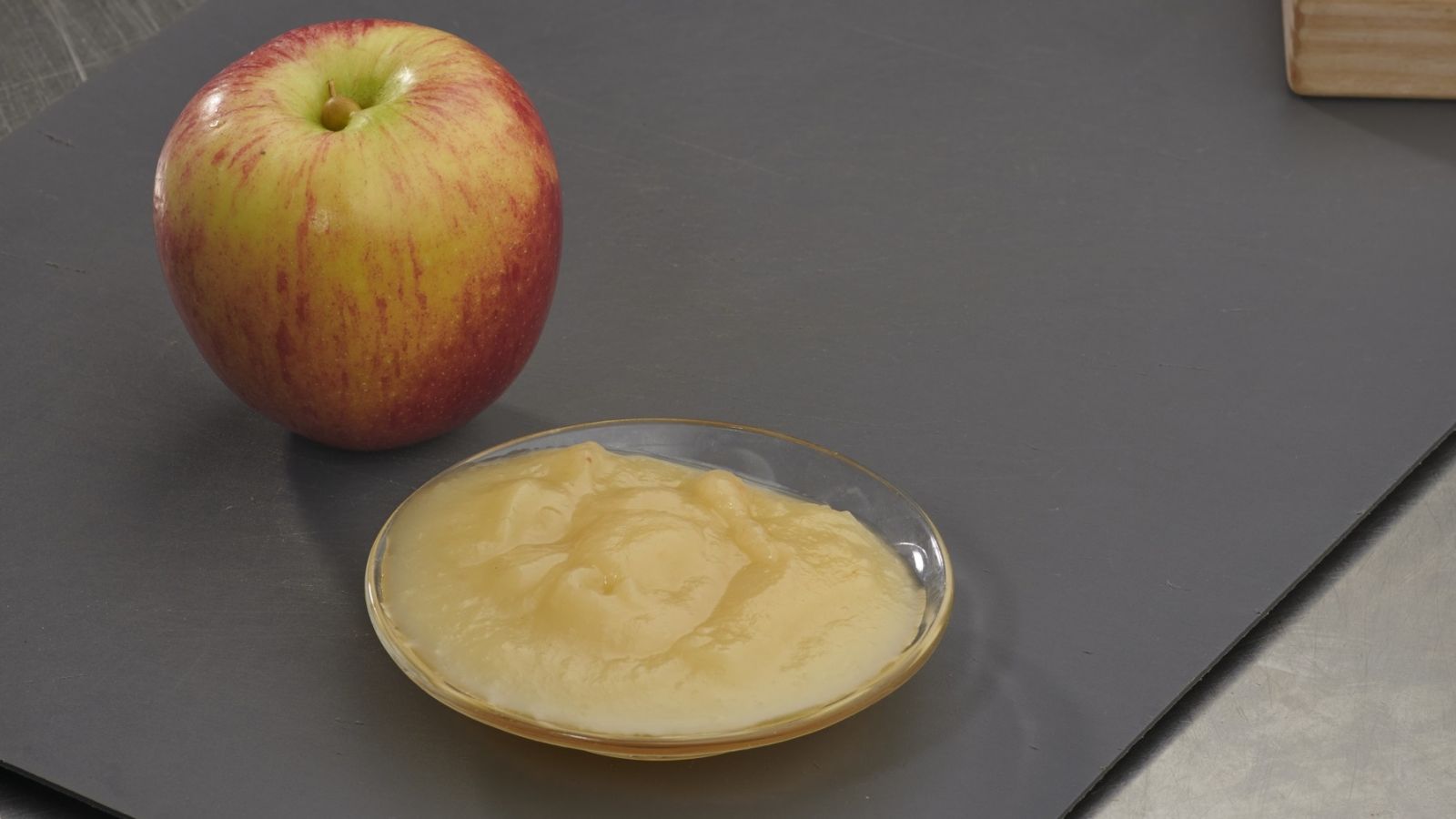 - Äpfel im Kochtopf mit einem Pürierstab fein pürieren.