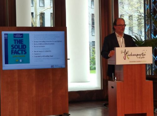 Der Nachmittag war den Projektergebnissen der Küchenpartie mit peb gewidmet. Neben dem Vortrag zu den Evaluationsergebnissen und einem Praxispanel zur Küchenpartie mit peb stimmte Ernährungspsychologe PD Dr. Thomas Ellrott mit dem Impulsvortrag „Zum Stellenwert gemeinsamer Mahlzeiten“ auf die Bedeutung des Miteinander-Kochens und –Essen ein.