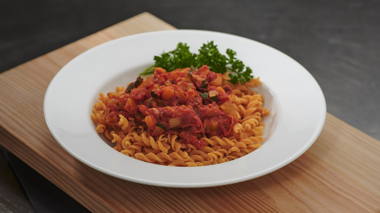 - Zum Schluss die Gemüsebolognese mit Kräutern, Salz und Pfeffer würzen.