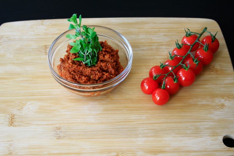 Hier mal eine vegane Alternative eines Pesto Rosso mit frischen mediterranen Kräutern – einfach herrlich!