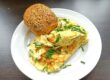 4. Für die Soße eine Schalotte in feine Würfel schneiden. Die passierten Tomaten mit dem Apfelsaft und ca. 60 ml Wasser in einem Schälchen glatt verrühren. Etwas Öl in eine Pfanne geben und die Schalottenwürfel ca. 2 min. anbraten. Die Tomatenmischung dazu gießen und etwas Currypulver dazugeben. Alles aufkochen und zugedeckt bei mittlerer Hitze 7-8 Min. köcheln lassen. Falls die Sauce zu dickflüssig wird, esslöffelweise Wasser hinzufügen. Mit Salz und Pfeffer abschmecken.