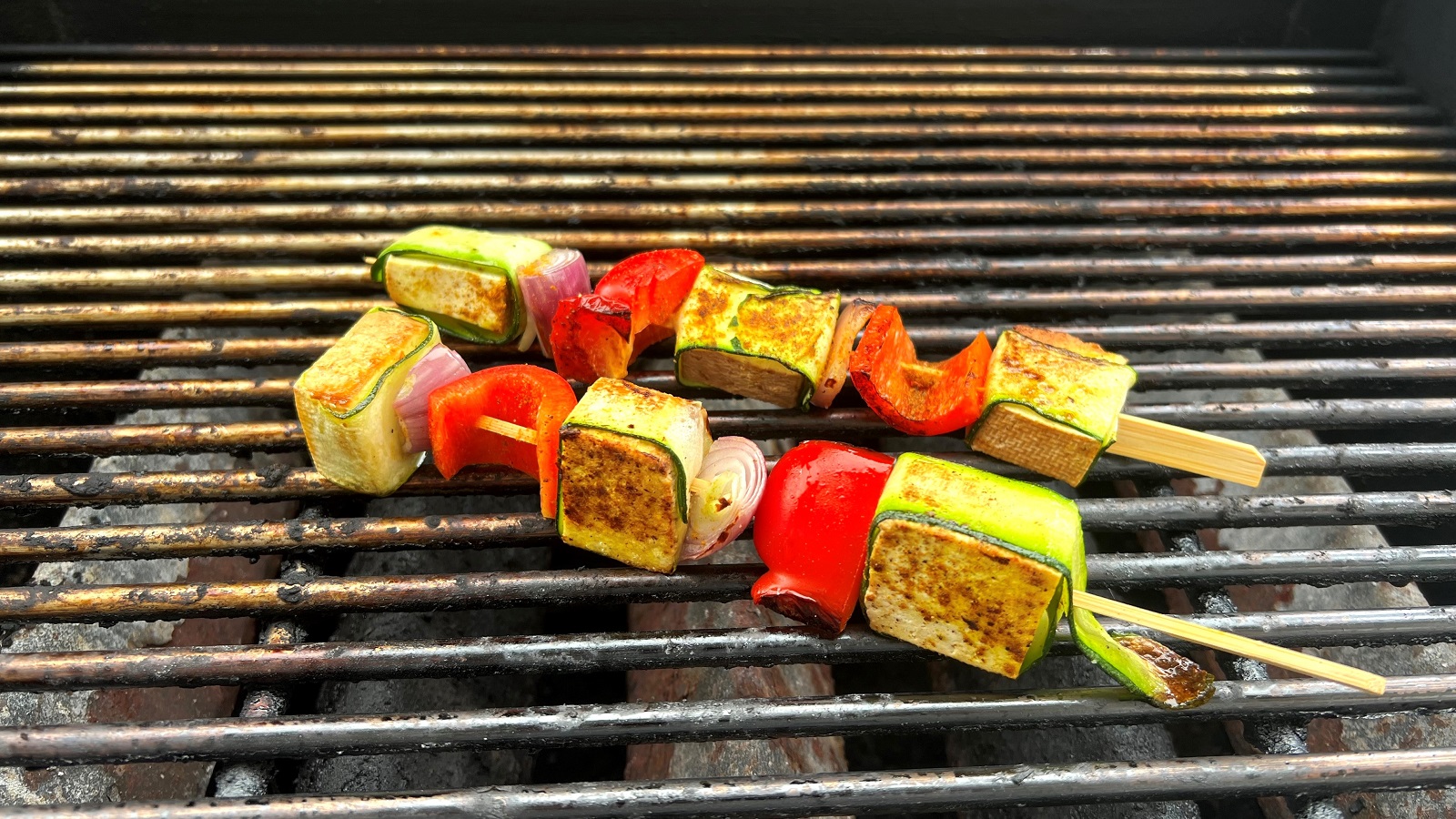 3. Die Spieße auf dem Grill bei mittlerer bis starker Hitze ca. 5-7 Min. rundherum anbraten.